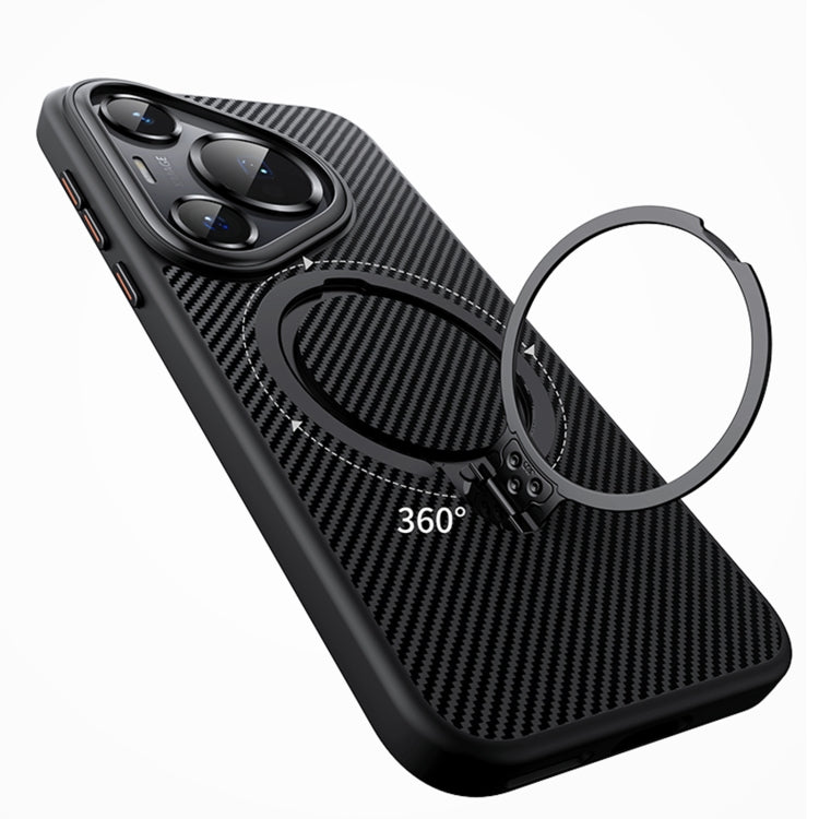Funda para Huawei Pura 70 de Fibra de Carbono con Soporte Magsafe de Doble Anillo (Plata)