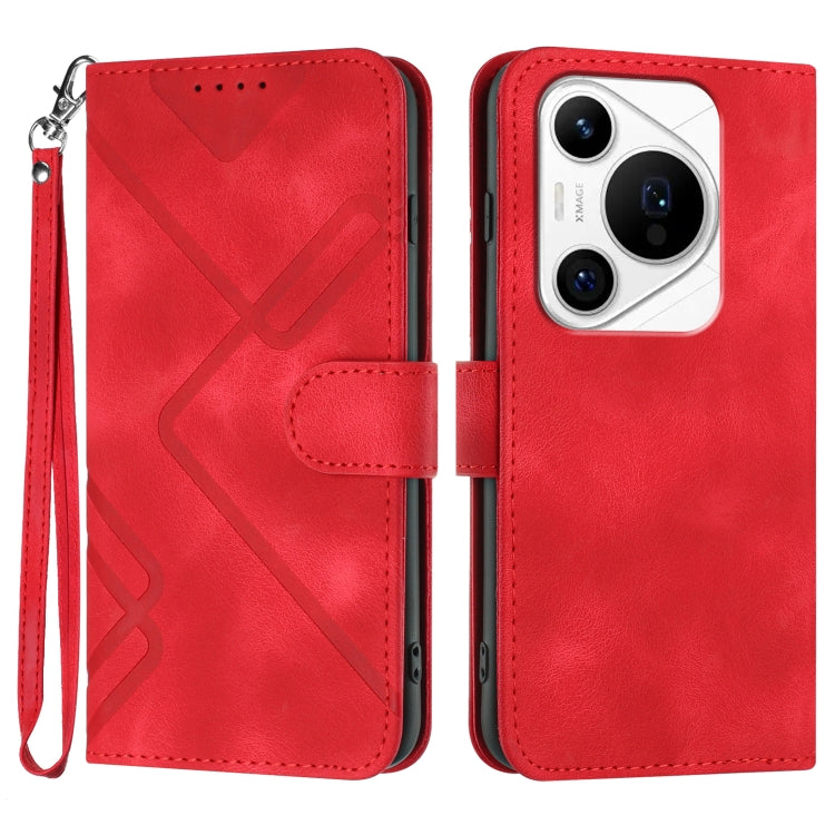 Funda de Cuero Huawei Pura 70 Pro/70 Pro+ con Patrón de Líneas y Sensación de Piel (Rojo)