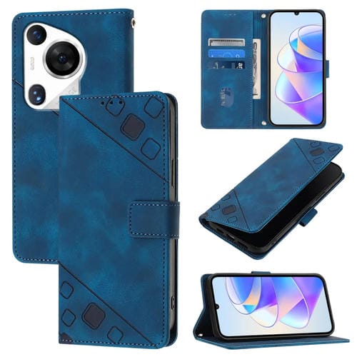 - 1x Funda de Cuero Huawei Pura 70 Pro Skin Feel En Relieve (Azul)