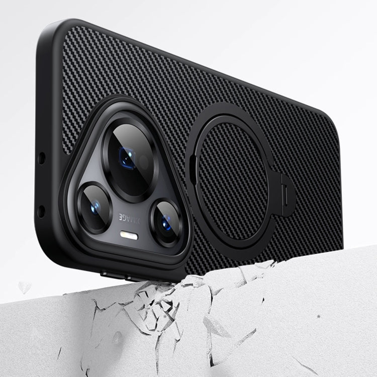 Funda para Huawei Pura 70 Ultra Double Ring Magsafe Holder de Fibra de Carbono (Plata)
