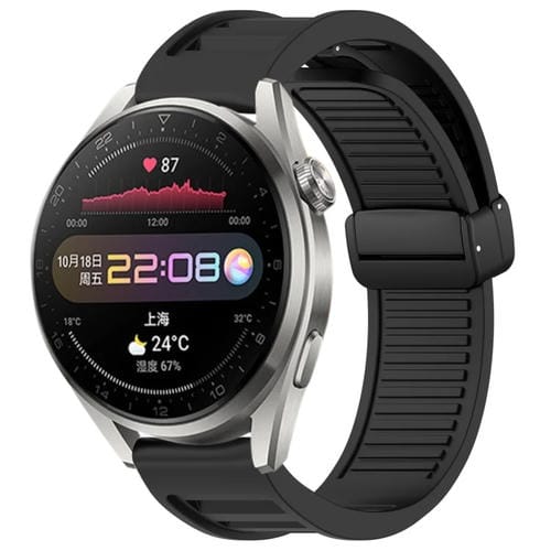 Correa de Silicona para Huawei Watch 3 Pro con Hebilla Magnética Plegable 22mm (Negro)