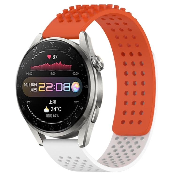 Correa de Silicona para Huawei Watch 3 Pro con Puntos 3D Transpirables y Orificios 22mm (Naranja + Blanco)