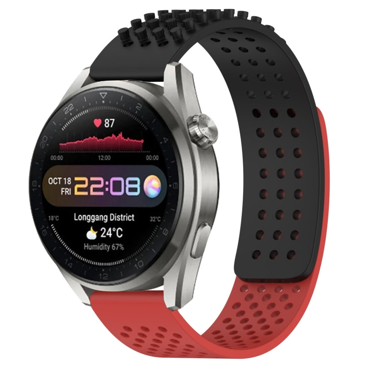 Correa de Reloj de Silicona para Huawei Watch 3 Pro con Puntos 3D Transpirables y Orificios de 22mm (Negro + Rojo)