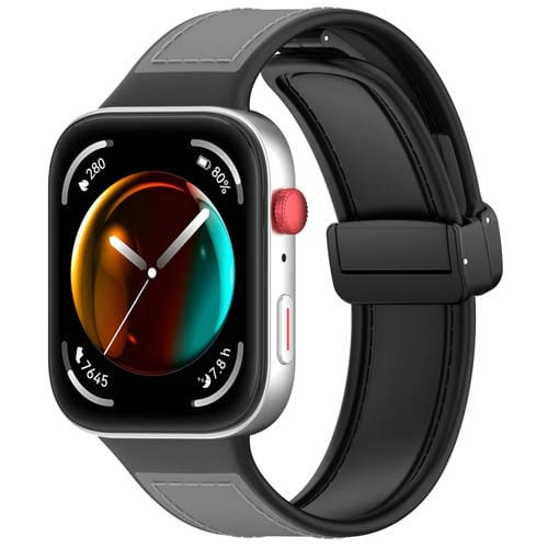 Correa de Reloj para Huawei Watch Fit 3 de Cuero y Silicona con Hebilla Plegable (Gris)