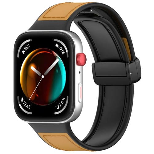 Correa de Reloj para Huawei Watch Fit 3 de Cuero y Silicona con Hebilla Plegable (Marrón)