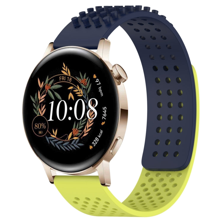 Correa de Silicona para Huawei Watch GT3 42mm 20mm Agujeros Transpirable Puntos 3D (Azul Medianoche + Verde Lima)