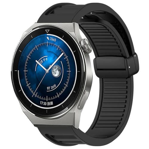 Correa de Silicona para Huawei Watch GT3 Pro 46mm 22mm con Hebilla Magnética Plegable (Negro)