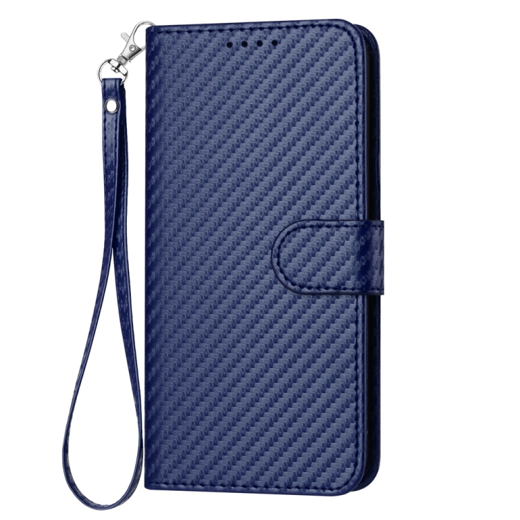 Funda de Cuero para Huawei Y5P Yx0070 con Hebilla de Fibra de Carbono y Cordón (Azul Real)