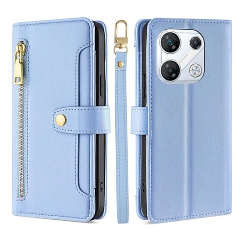 Funda de Cuero para Infinix Gt 10 Pro 5G Lite con Textura de Oveja y Cremallera Cruzada (Azul)