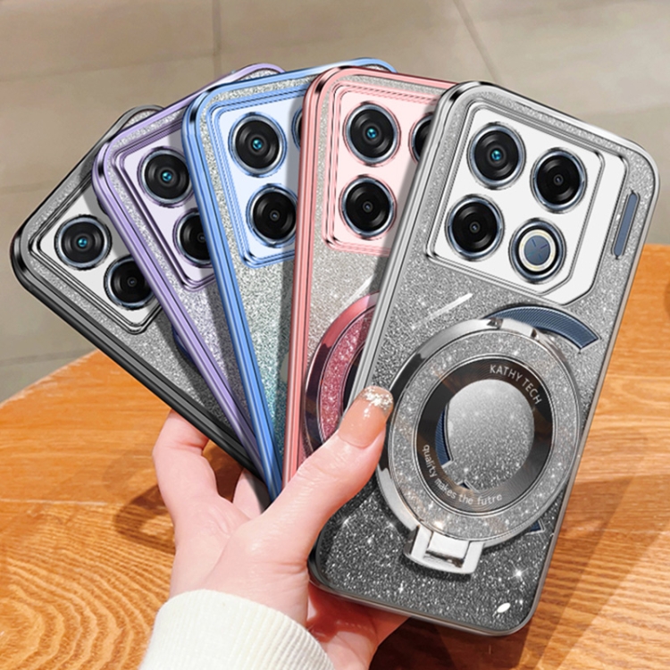 Funda TPU para Infinix GT 20 Pro con Soporte Redondo y Brillo Degradado (Plata)