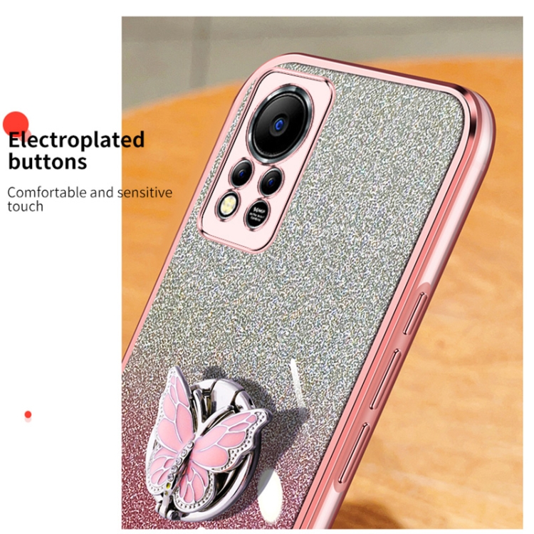 Funda TPU para Infinix Hot 11S con Soporte Mariposa y Brillo Degradado Plateado (Negro)
