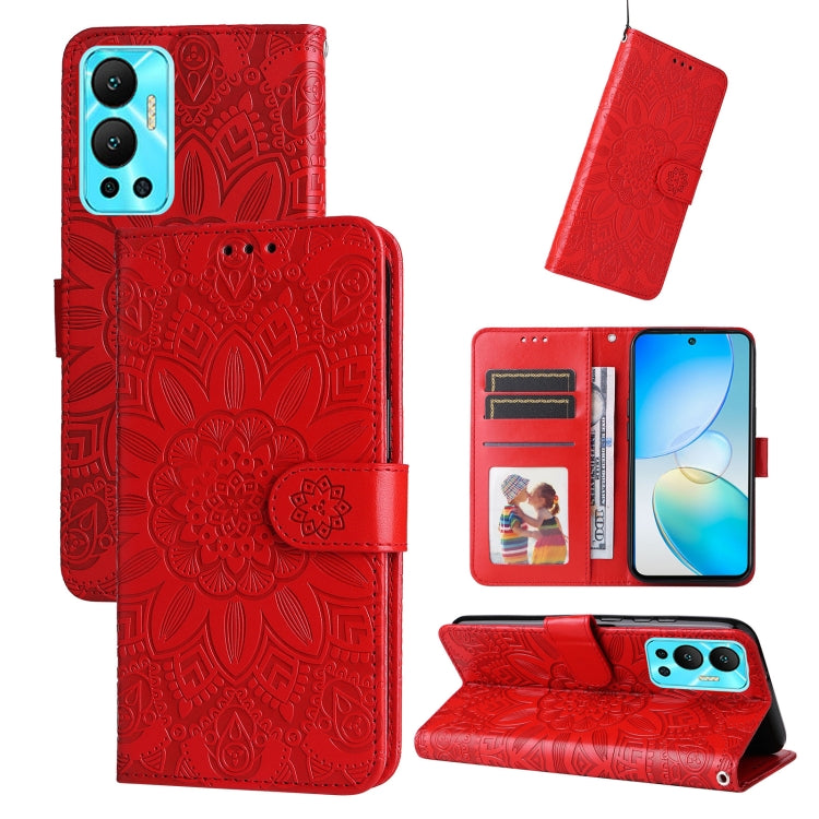Estuche para Teléfono Infinix Hot 12 Cuero con Estampado de Girasol en Relieve (Rojo)