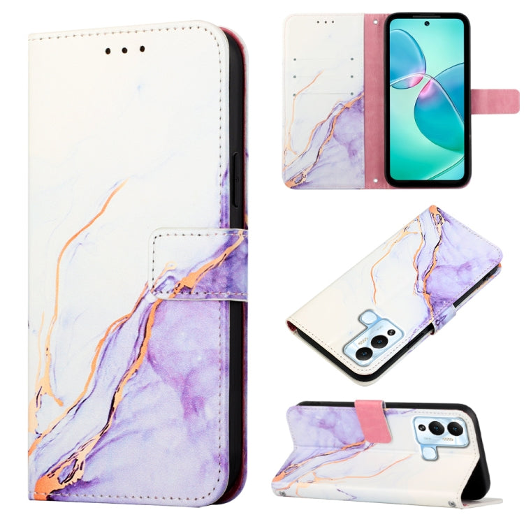 Estuche de Cuero para Infinix Hot 12 Play / 12 Play Nfc Pt003 con Tapa y Patrón de Mármol (Blanco Púrpura)