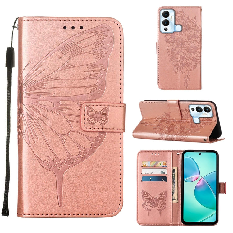 Funda de Cuero para Infinix Hot 12 Play/Hot 12 Play Nfc X6816C con Tapa Mariposa en Relieve (Oro Rosa)