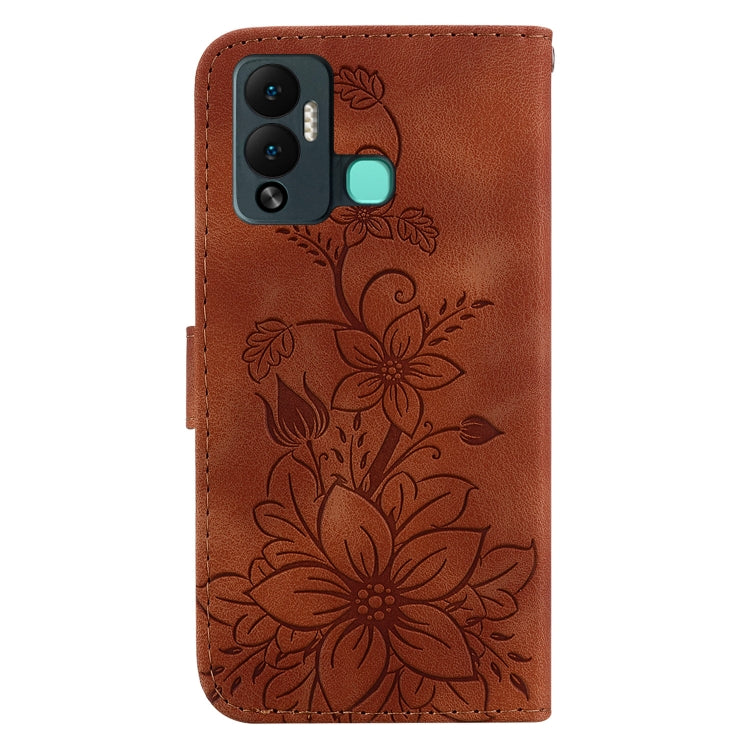 Estuche de Cuero En Relieve para Infinix Hot 12 Play Lily (Marrón)