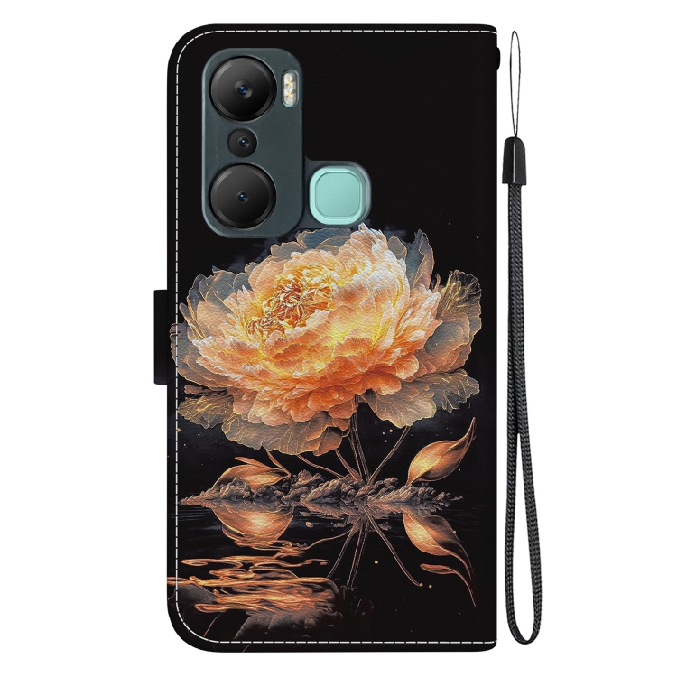 Funda de Cuero para Infinix Hot 12 Pro con Dibujo Coloreado y Textura de Cristal (Peonía Dorada)
