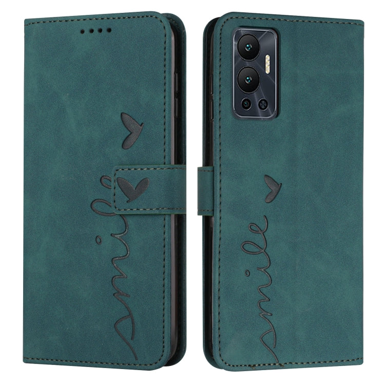 Funda de Cuero para Infinix Hot 12 Skin Feel con Patrón de Corazón (Verde)