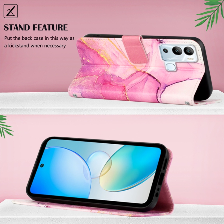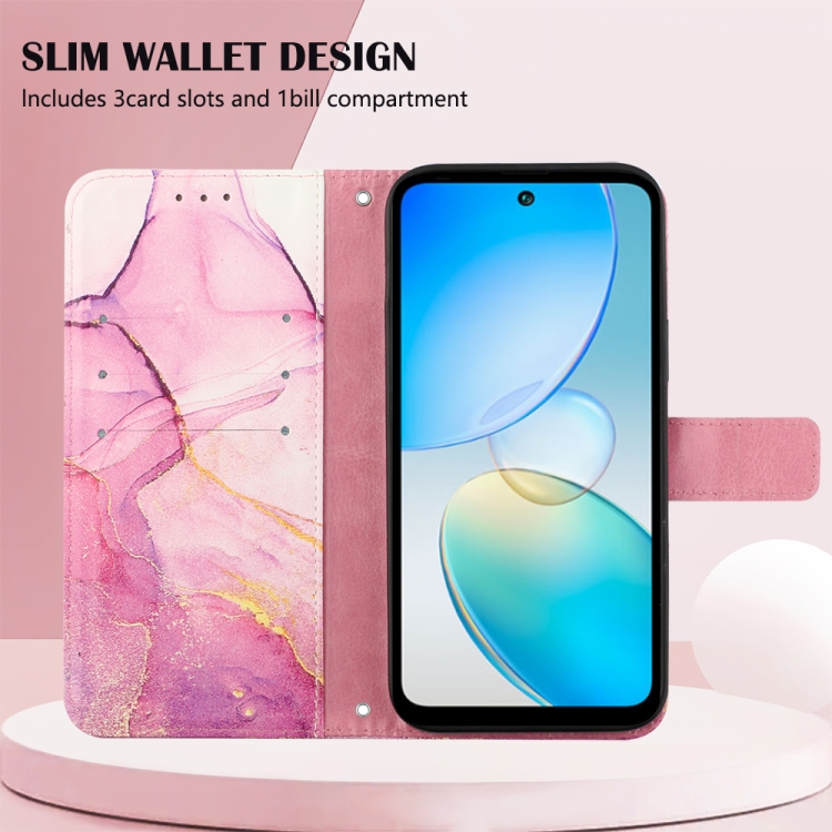 Funda para Infinix Hot 12I X665 Pt003 con Tapa de Cuero y Patrón Mármol (Oro Rosa Púrpura)