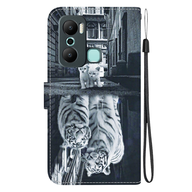 Funda de Cuero para Infinix Hot 20 Play con Dibujo Coloreado y Textura de Cristal (Reflejo de Tigre Gato)