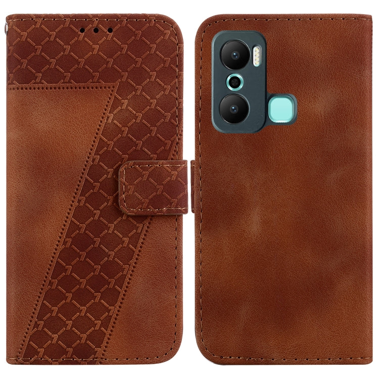 Funda de Cuero En Relieve para Infinix Hot 20 Play en Forma de 7 (Marrón)