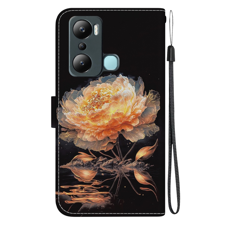 Funda de Cuero para Infinix Hot 20I con Dibujo Coloreado y Textura de Cristal (Peonía Dorada)