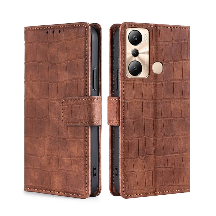 Funda de Cuero Infinix Hot 20I Skin Feel Cocodrilo con Cierre Magnético (Marrón)