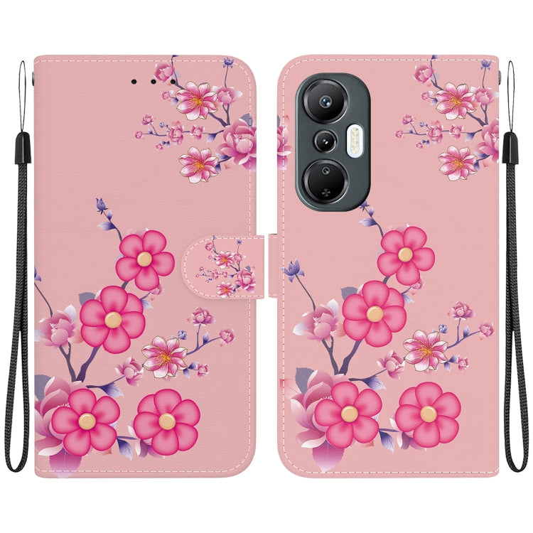 Estuche de Cuero para Infinix Hot 20S con Dibujo Coloreado y Textura de Cristal (Flores de Cerezo)
