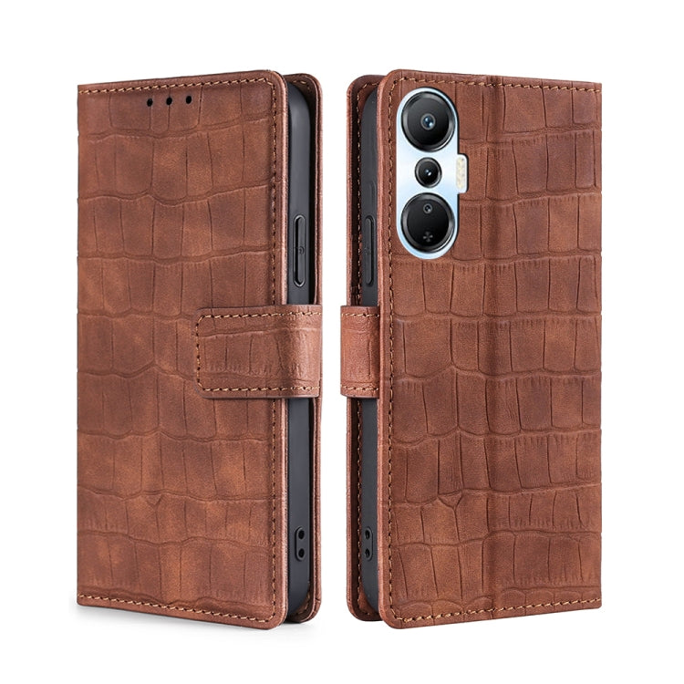 Funda de Cuero Infinix Hot 20S Skin Feel Cocodrilo con Cierre Magnético (Marrón)