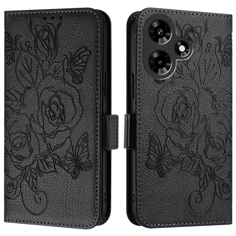 Funda de Cuero Antirrobo RFID para Infinix Hot 30I con Relieve Rosa (Negro)