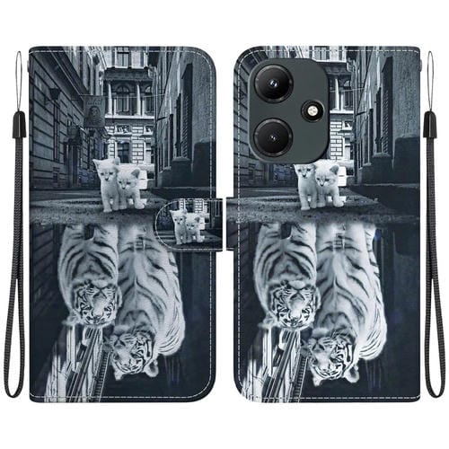 Funda para Teléfono Infinix Hot 30I X669C Cuero con Dibujo Coloreado y Textura de Cristal (Reflejo de Tigre Gato)
