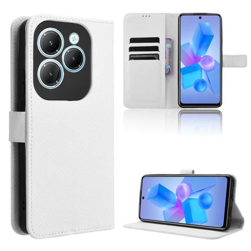 Funda de Cuero para Infinix Hot 40 4G con Textura de Diamante (Blanco)