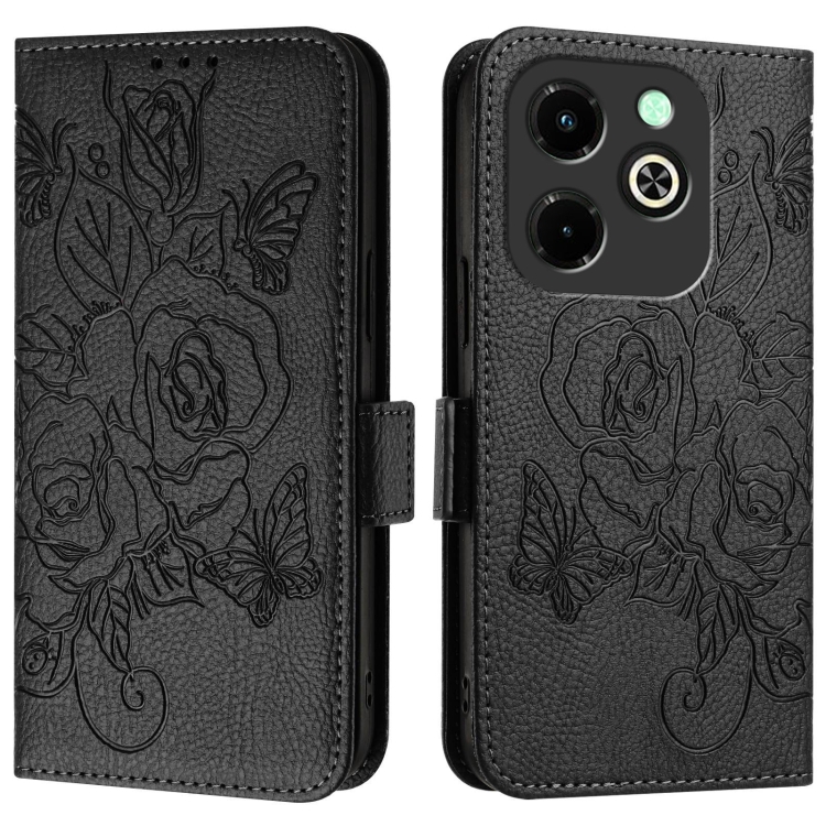 Funda de Cuero Antirrobo RFID para Infinix Hot 40I con Relieve Rosa (Negro)