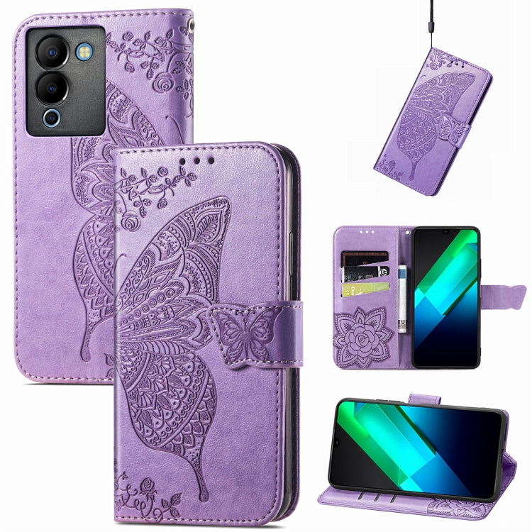 Estuche para Infinix Note 12 G96 Butterfly Love Flower de Cuero en Relieve (Lavanda)