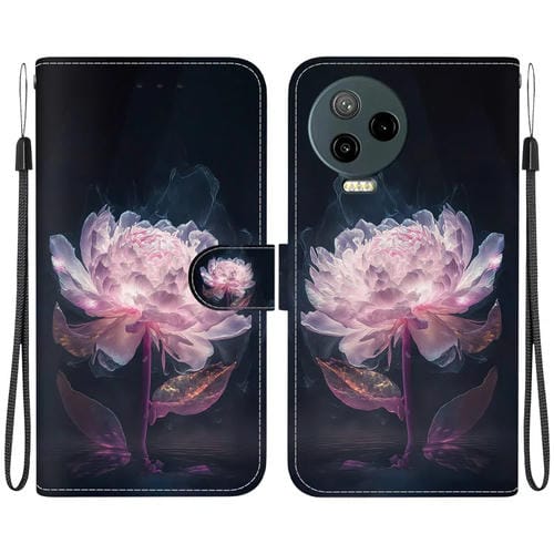 Funda de Cuero para Infinix Note 12 Pro 4G con Dibujo Coloreado y Textura de Cristal (Peonía Púrpura)