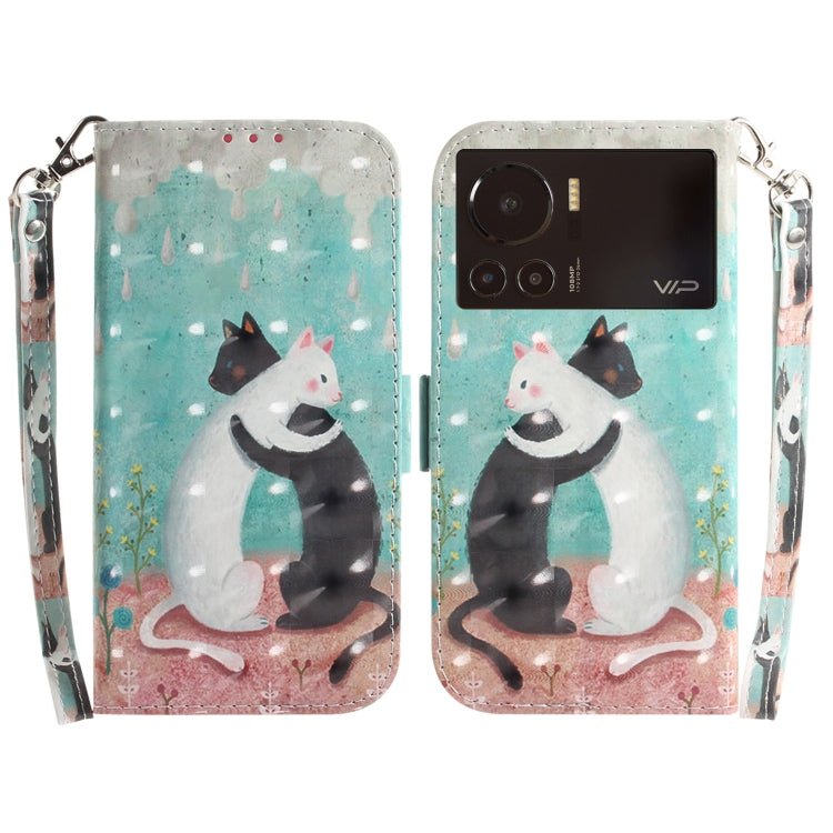 Funda de Cuero para Infinix Note 12 Vip con Tapa Horizontal y Diseño 3D (Gato Blanco y Negro)