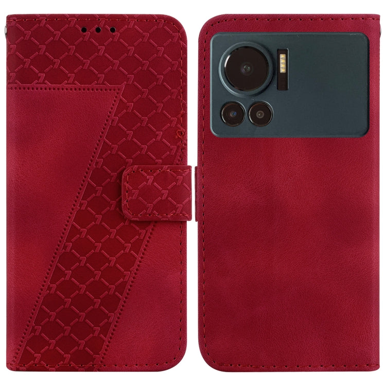 Funda de Cuero En Relieve en Forma de 7 para Infinix Note 12 Vip (Rojo)