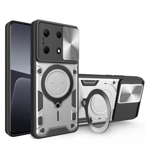 Funda para Infinix Note 30 4G y 5G Cd Texture Sliding Camshield con Soporte Magnético (Plata)