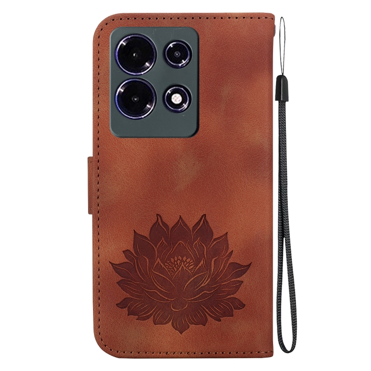 Funda de Cuero para Infinix Note 30 4G / 5G con Relieve de Loto (Marrón)