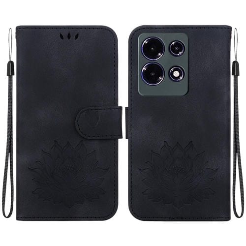 Funda de Cuero para Infinix Note 30 4G y 5G con Relieve de Loto (Negro)