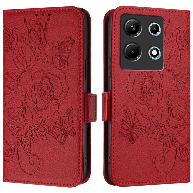Funda de Cuero Antirrobo RFID para Infinix Note 30 4G con Relieve (Rojo)