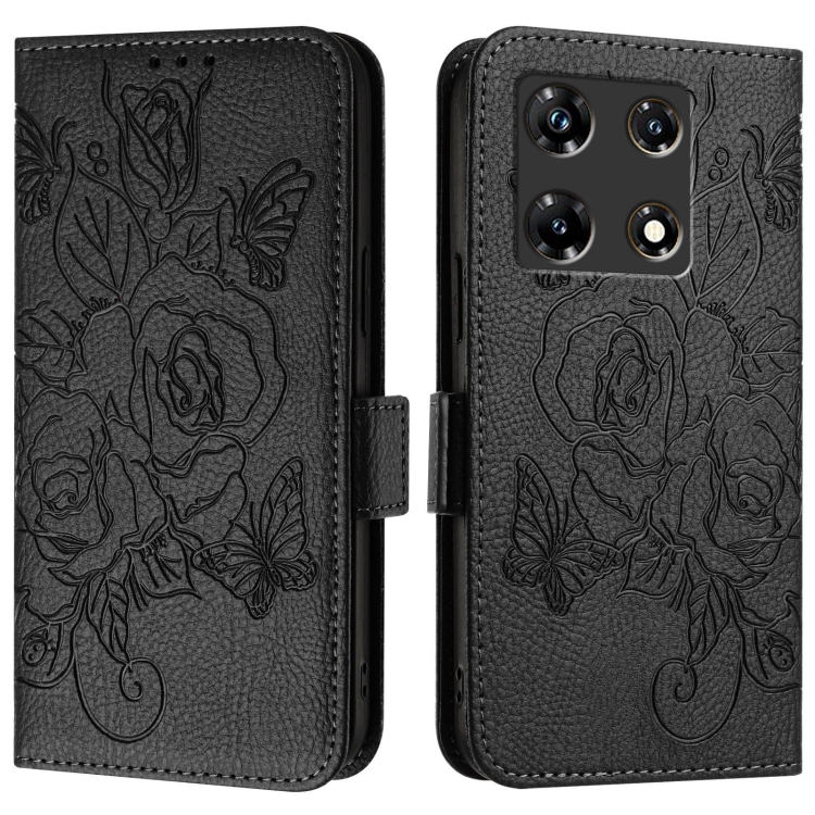 Funda de Cuero Antirrobo RFID para Infinix Note 30 Pro y Note 30 5G con Relieve Rosa (Negro)