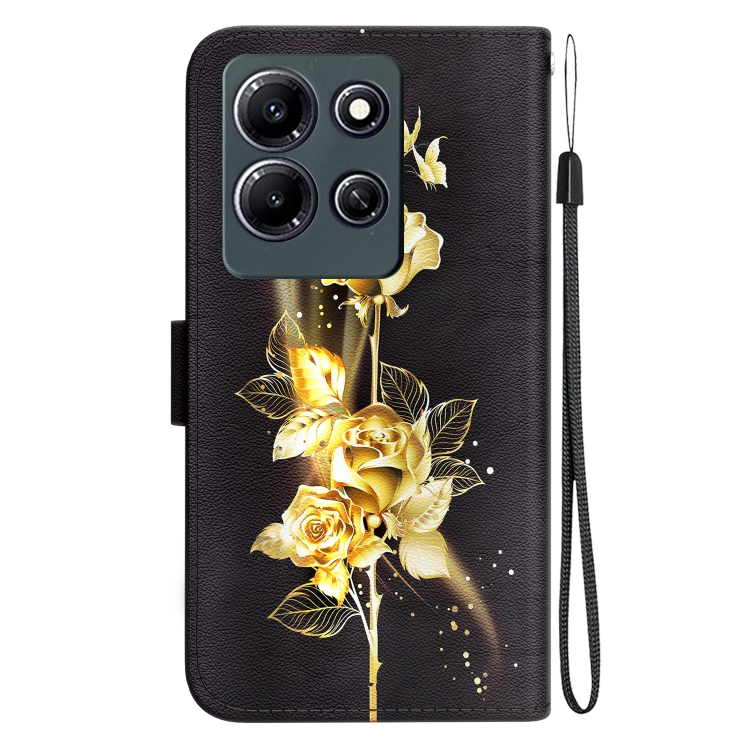 Funda de Cuero para Infinix Note 30I con Dibujo Coloreado y Textura de Cristal (Mariposa Dorada Rosa)