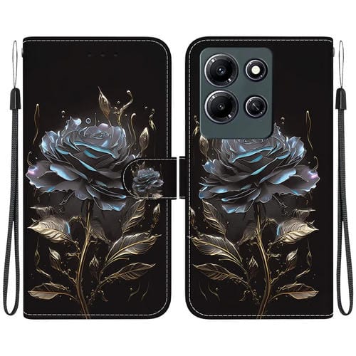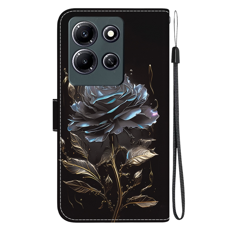 Funda de Cuero para Infinix Note 30I con Dibujo Coloreado y Textura de Cristal (Rosa Negra)