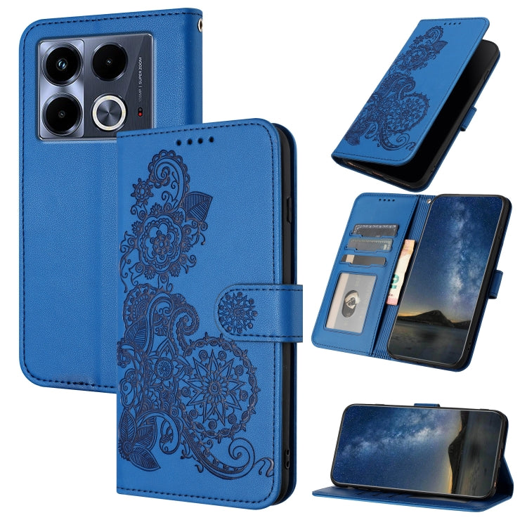 Funda de Cuero para Infinix Note 40 4G Datura Flower con Tapa en Relieve (Azul)