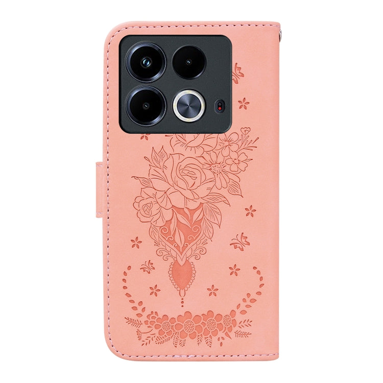 Funda para Infinix Note 40 4G de Cuero con Relieve Mariposa y Rosa (Rosa)