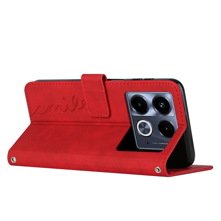 Funda para Infinix Note 40 5G Skin Feel Heart de Cuero en Relieve con Cordón Largo (Rojo)