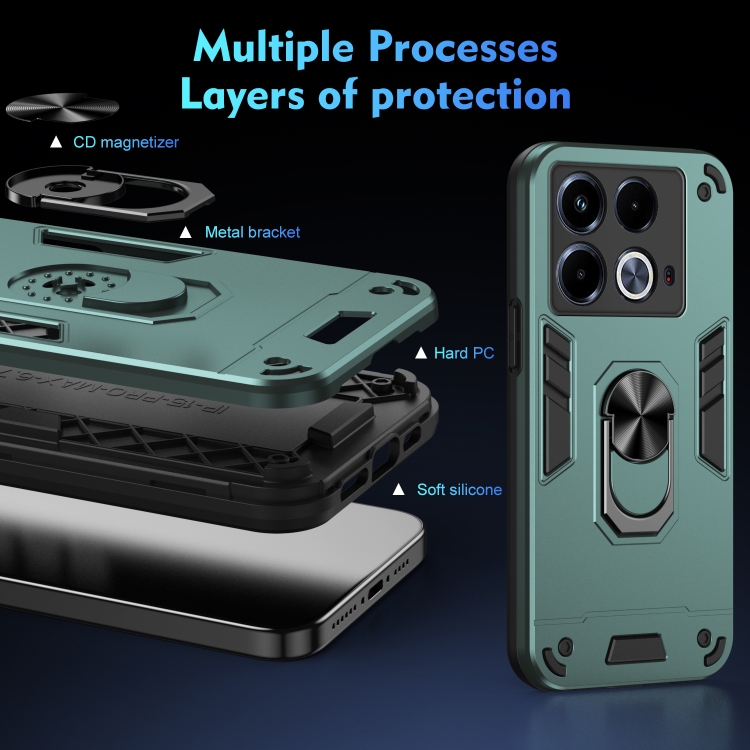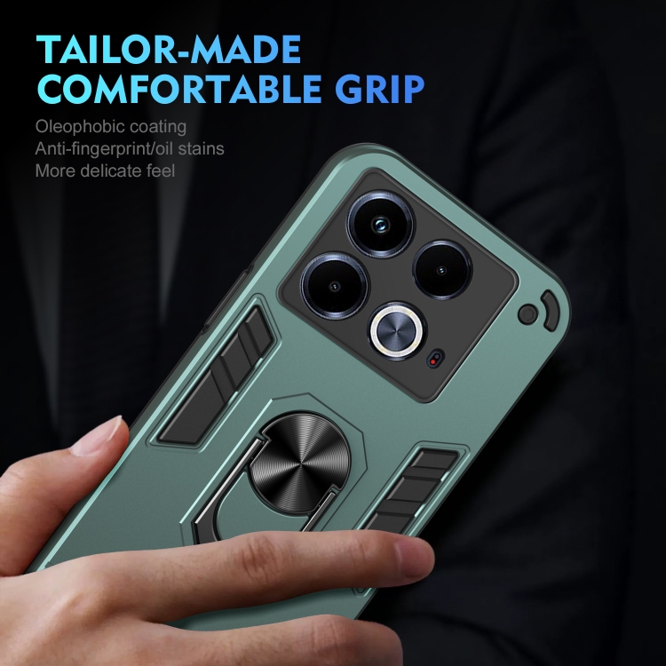 Funda para Infinix Note 40 con Soporte de Anillo de Metal y Protección a Prueba de Golpes (Verde)