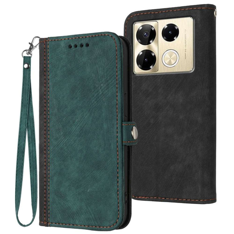 Funda de Cuero para Infinix Note 40 Pro 4G / 5G con Correa de Mano y Hebilla Lateral (Verde Oscuro)