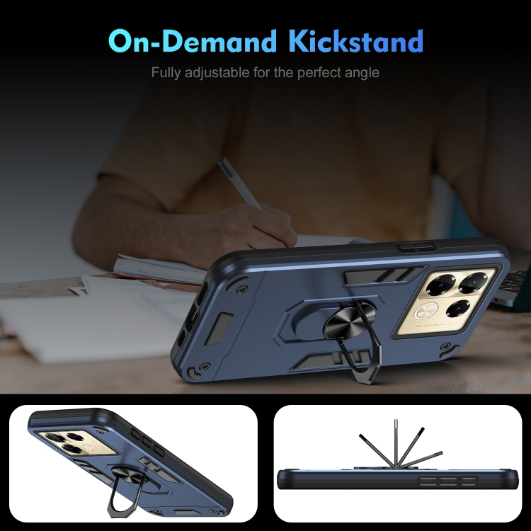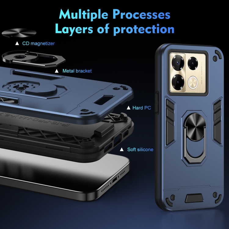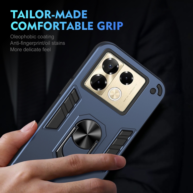 Funda para Infinix Note 40 Pro 4G con Soporte de Anillo de Metal a Prueba de Golpes (Azul)