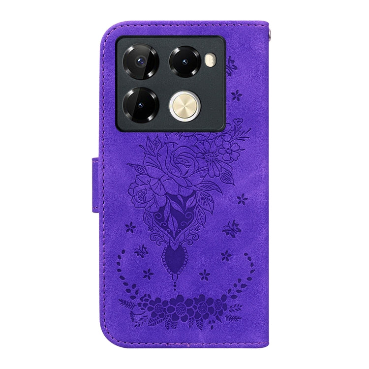 Funda para Infinix Note 40 Pro de Cuero con Relieve Mariposa y Rosa (Púrpura)
